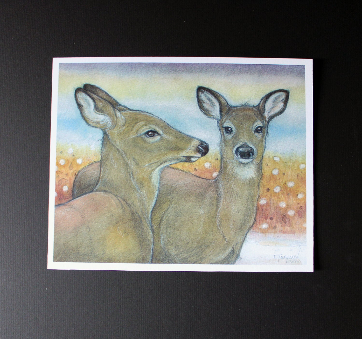 This 8"x10" image is printed on textured, matte, 190 gsm Epson Watercolour paper. It has a .25" white border for matting and framing.